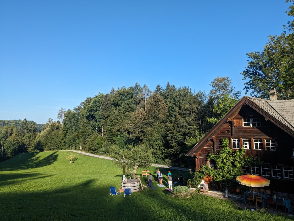 Die Unterkunft verfügt über einen beheizbaren Hotpot mittem im Grünen. Wenn es das Wetter zulässt praktizieren wir Yoga mitten in der Natur.