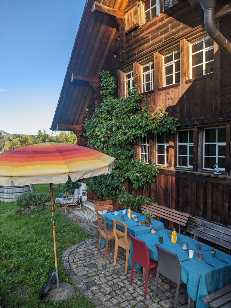 Wir übernachten im Berghof Zistenegg in kleinen Gruppenzimmern (max. 3 Personen pro Zimmer). Die Zistenegg liegt etwas abseits vom Dorf auf einer Wiese, zwischen bewalteten Hügeln. Wir haben die Zistenegg das ganze Wochenende exklusiv für uns. Dusche und WC befinden sich auf dem Stockwerk. Das hausgemachte Essen richtet sich nach dem Yoga und Kletterprogramm, wir achten auf hochwertige Lebensmittel, saisonal und aus der Region.